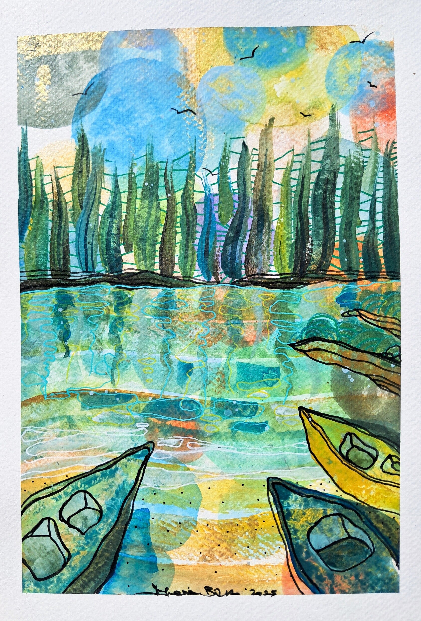 "I realized this Collection during my last trips, the first, on August 2025, in US, San Francisco area. The second in Italy, to visit my family in Torino, but going there with a roadtrip between Portugal, Spain and France. Here some still available images, part of the collection that counted more than 30 paintings. I painted this collection on 300gr Fabriano Paper, made in Italy, to keep in some of my works, starting with the support, the high standards of italian manufactory."